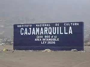 A mummy that is approximately 800 years old that is believed to be of pre inca cultures was found on the site in November 2021 by a team of archeologists of the National University of San Marcos.[1] Researchers reported that the mummy was tied with strings, covering his face with his hands, so they assumed it was a southern Peruvian funeral custom.[2] In February 2022, archaeologists announced the discovery of six mummified children thought to have been sacrificed, probably to accompany a dead elite man to the afterlife. According to archaeologist Pieter Van Dalen, 1,000-1,200 years old mummies were probably relatives and placed one above the other in different parts of the tomb.[3][4]