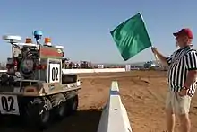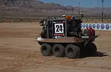 Branding themselves as "Team CajunBot",[8] (UL Lafayette's athletic teams are referred to as the Ragin' Cajuns) the group was able to have the first CajunBot vehicle ready within a few short months.[9] "CajunBot" was built on a 6-wheeled all-terrain vehicle commonly used for hunting in the swamps and marshlands.