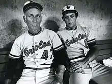 To begin Ripken's minor league career, the Orioles assigned him to the Bluefield Orioles of the rookie Appalachian League.[25] He batted .264 with 63 hits, no home runs, and 24 RBIs, failing to make the league's all-rookie team.[26] In 1979, Ripken moved up to the Single-A Miami Orioles of the Florida State League. Shortly into the season, Miami manager Lance Nichols decided to move Ripken to third base, saying, "Cal was having some problems at short, so naturally I decided to shift him to third ... Third base was a perfect fit for Cal and our team."[27] On July 2, Ripken hit his first professional home run, a game-winner in the 12th inning against Gary Abone of the West Palm Beach Expos.[28] Ripken batted .303, hit five home runs, led the league with 28 doubles, and had 54 RBIs while playing in all 105 of Miami's games. He was named an All-Star after the season.[28] His performance earned him a brief call-up to the Charlotte Orioles of the Double-A Southern League; Ripken batted .180 in a month with them, albeit with three home runs.[29] Ripken began 1980 with Charlotte. His manager at Charlotte, Jimmy Williams, predicted him to set the team home run record, and Ripken did not disappoint.[30] At season's end, he had 25 home runs, besting the previous record by four. He also had 28 doubles, 78 RBIs, and a .492 slugging percentage.[31] Ripken was named an All-Star while helping Charlotte win the Southern League championship.[31]