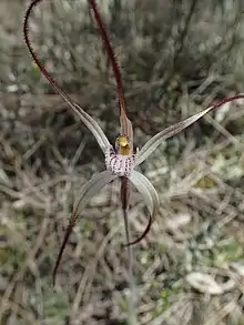Caladenia horistes was first described in 2001 by Stephen Hopper and Andrew Phillip Brown from a specimen collected in the Wittenoom Hills north of Esperance and the description was published in Nuytsia.[1] The specific epithet (horistes) is an Ancient Greek word meaning "definer of boundaries"[6] referring to the distribution of this species being at the easterly limit distribution of orchids similar to this species.[3]