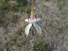 Caladenia longicauda subsp. crassa growing near Munglinup