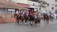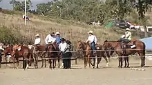 ![]() Caldoche "bushmen" cavaliers carrying the 2011 Pacific Games flame in Bourail | |