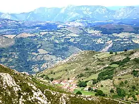 Caldoveiro Peak (Pico Caldoveiro) is a protected mountain range in Asturias, Northern Spain,[1] with a maximum peak of 1,357 meters, near the village of Villabre. It spans the parishes of Yernes, Proaza, Tameza, Grau (Grado), and Teberga (Teverga). Minerals found in Caldoveiro mines include Fluorite, Calcite, and Quartz.[2] The Asturian administration uses Caldoveiro Peak in its tourism advertising, describing the mountain range as so: