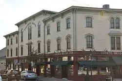 The Caldwell Block is a historic block on S. Main Street in Ipswich, Massachusetts. It is the oldest surviving building in Ipswich that was designed as a commercial and retail space, and is still used for that purpose. It is located prominently in the center of Ipswich, at the junction of North and South Main Streets, and Central and Market Streets. It was built in 1870 by Luther Caldwell, on the site of an old woolen mill that was destroyed by fire a few years earlier, and features Italianate styling. The building has always housed retail stores on the ground floor and office space above. It is notable as the location of the offices of writer John Updike between 1961 and 1974, when he wrote many of his works there.[2]