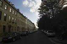 Caledonia Place was completed in 1843 by architects T Foster and W Okely, The area has Grade II listed buildings and has mid Georgian style. Each three storey house has an attic and basement and has rear elevations differentiated by fine cast-iron Grecian balconies.[2] In 1852, Lord Macaulay once lived at number 16 Caledonia Place.[3]