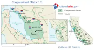 The 13th district no longer consists of the northwestern portion of Alameda County. Cities in the district included Alameda, Albany, Berkeley, Emeryville, Oakland, Piedmont, and San Leandro.[3]