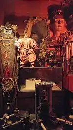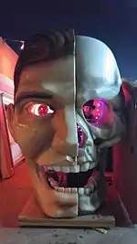 The CIA featured an extensive collection of sideshow memorabilia that Crew and Ferguson, both avid fans and historians of the American sideshow, had collected over the years. The venue, painted with bright, garish circus colors, displayed cryptotaxidermy, pickled punks and vintage banners for sideshow attractions and over the years has featured such oddities and hoaxes as a Fiji mermaid, the skull of "the world's smallest Freemason", the severed head of Sasquatch, the severed arm of Claude de Lorraine and a fairy skeleton.[2][3][4][6] The CIA's most notable attraction, however, may have been the preserved corpse of Achile Chatouilleu, an American circus performer who died in 1912 and requested his body be put on display in the clown makeup and attire he had worn throughout his life.[2][7] Although Crew leased the body for six months in 2002, he claims that the owners "forgot" to retrieve it and the corpse remained at the CIA in a hermetically sealed glass coffin, the body itself embalmed with arsenic.[2][4] Chatouilleu's corpse was such a prominent fixture of the CIA that the LA Weekly newspaper ranked the venue in its "Best of LA 2006" list as "Best Place to Find a Dead Clown".[3][8]