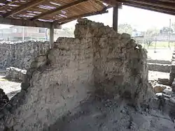This area can be subdivided into two sub-areas, divided (east and west) by the adobe wall, it is believed to have been built during the last Mexica occupation, in the late postclassical period.[1]