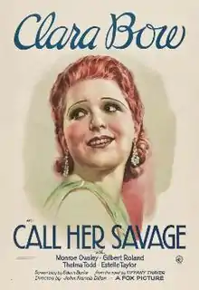 Call Her Savage is a 1932 pre-Code drama film directed by John Francis Dillon and starring Clara Bow.[1] The film was Bow's second-to-last film role. It is also one of the first portrayals of homosexuals on screen, including a scene in a gay bar.[2][3]