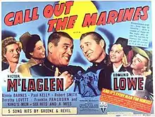 Call Out the Marines is a 1942 military comedy released by RKO in February 1942. It stars Victor McLaglen and Edmund Lowe playing the same characters with different names that they played in What Price Glory? and several sequels; however the original film trailer mentions What Price Glory? and The Cock-Eyed World.[3] The film features extensive stock footage from RKO's Soldiers of the Sea that in some cases appear on process screens that the actors stand in front of.
