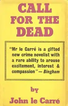 Call for the Dead is John le Carré's first novel, published in 1961. It introduces George Smiley, the most famous of le Carré's recurring characters, in a story about East German spies inside Great Britain. It also introduces a fictional version of British Intelligence, called "the Circus" because of its location in Cambridge Circus, that is apparently based on MI6 and that recurs throughout le Carré's spy novels. Call for the Dead was adapted for film as The Deadly Affair (1966).