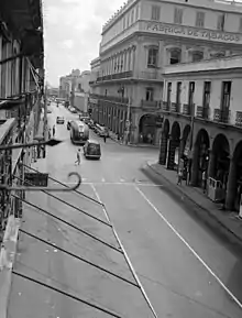 Calle Zulueta follows the exterior line of the old defense wall of Havana, its route is affected by several inflections along the way. Running from its northern source at Calle Arsenal, it follows a slight incline to the southwest and heads south at the intersection with Calle Neptuno, then inclining to the south southeast at Calle Dragones.[1] With a slight incline to the southwest, it heads south at the intersection with Calle Neptuno, then inclining to the south southeast at Calle Dragones.[1] It marks one of the limits of the Parque Central, it extends by the Plaza hotel, and by the Museo Nacional de Bellas Artes (Trocadero, between Zulueta y Monserrate), Sloppy Joe's bar.