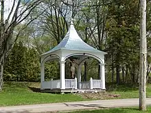 The concept of the Calvary of Sainte-Geneviève-de-Batiscan was based on the reproduction of the twelfth station of the path of the Cross in Oka. Following a pilgrimage in Oka, Father F.-X. Côté, former parish priest of Sainte-Geneviève-de-Batiscan, was back with the idea of erecting a cross covered with a wooden canopy on the land of Captain François Germain.[4] · [2]