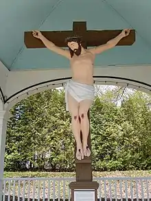 During the second half of the 19th century, the Stations of the Cross were dismantled and replaced by another inside the church. The Calvary was offered in 1879 to the inhabitants of Rang de la Rivière-à-Veillet.[5]