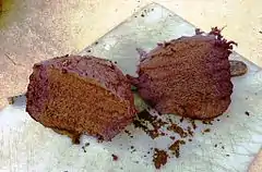 The fruiting body is 5–20 cm (2–8 in) high and/or broad.[1] When young it is relatively smooth and spherical or slightly flattened and purplish or brownish.[1] It has a chocolate-brown or purple-colored gleba with a smooth exoperidium. As it matures it often becomes pear or irregularly-shaped and the exterior skin takes on a dark or silvery colour. As it ages the exterior dries and cracks and the fleshy spore-bearing interior breaks away to be distributed by wind and rain. After the spores completely disperse, "a soft leathery cup-shaped sterile base lightly rooted to the ground remains".[2]
