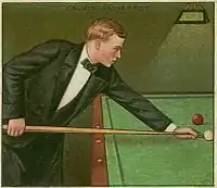 On March 14, 1908, he broke the world's amateur record for the high run in the opening game of the national amateur 14.2 balkline billiards tournament with an impressive high run of 168. He was competing against Clarence Jackson of Chicago.[6][7] Starting in 1909, he competed in professional as well as amateur tournaments, winning at least three professional championships.[4] In 1910, he defeated the renowned French champion Rerolle for the international amateur championship.[2]