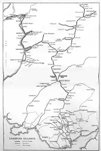 - Mid-Wales Railway 45+1⁄2 miles (73 km): 1 August 1859; 1 September 1864. This railway was independent of the Cambrian until 1 January 1888, when the latter took over working the line. On 1 July 1904 the two railways amalgamated.