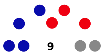 Camden Council is composed of nine councillors elected proportionally as three separate wards, each electing three councillors. All councillors are elected for a fixed four-year term of office. The mayor is elected by the councillors at the first meeting of the council. The most recent election was held on 4 December 2021, and the makeup of the council is as follows:[7][8][9]