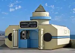 The Camera Obscura was added to the National Register of Historic Places in 2001 for its engineering significance. While the exterior of the building was extensively modified in 1957 to appear as a giant camera, the internal workings of the camera obscura, the basis of its placement on the Register, have remained unchanged since its erection in 1946. The 1957 external architecture was eligible to be evaluated for historical significance upon reaching fifty years of age in 2007.[4]