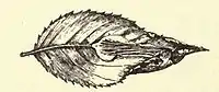 The larvae feed on Ostrya species (including Ostrya virginiana). They mine the leaves of their host plant. The mine has the form of a blotch mine on the upperside of the leaf. There are numerous longitudinal folds in the loosened epidermis at maturity, causing the opposite halves of the leaf to approach one another.