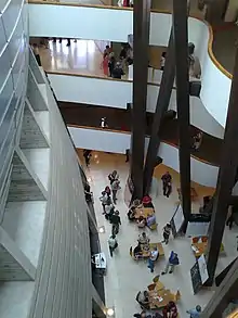 In 2003, the Cameri moved into the Tel Aviv Performing Arts Center complex, adjacent to the New Israeli Opera, the Municipal Library and the Tel Aviv Museum of Art. The new theater has five auditoriums: Cameri 1, the largest auditorium, has 930 seats; Cameri 2 has 430 seats, the Black Box seats 250, and the Rehearsal Hall seats 160.[2]