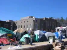 For access to major games, including those against the University of North Carolina, students reside in tents for months in an area outside of Cameron known as "Krzyzewskiville", named after head coach Mike Krzyzewski. The hardwood floor was dedicated and renamed Coach K Court in November 2000 following a Duke victory over Villanova in the Preseason NIT that was Krzyzewski's 500th win as Duke head coach.[9]