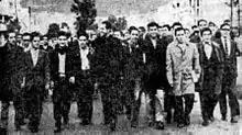 Camilo Torres (center, looking sideways) marching with students