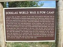Camp Douglas was an internment camp for Prisoners of War (POW) during World War II, located in the city of Douglas, Wyoming, United States. Between January 1943 and February 1946 in the camp housing first Italian and then German prisoners of war in the United States. While there are few remaining structures, the walls of the Officer's Club were painted with murals by three Italian prisoners.[2] These paintings depicting western life and folklore are now registered with the United States Department of the Interior National Park Service on the National Register of Historic Places. The story of this POW camp is an important part of the history of the town of Douglas.