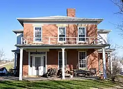The district is a farm that was used as a rendezvous camp by the Union Army during the American Civil War.[2] The two contributing buildings are brick farm buildings that were here when the camps were in operation. The Hugh B. and Mary Swan House (c. 1854) is a two-story brick structure that exhibits Greek Revival and Italianate influences. The two-level, brick spring house is a vernacular structure with a gable-roof. While typical in Pennsylvania, this is a rare example of a spring house in Iowa.[2] A large stone was erected as a monument to the two Civil War camps in a southwest corner of the farm. It was placed by the Belle Coddington Tent No. 34 of the Daughters of Union Veterans, on June 8, 1930. The open rolling fields to the east of the house are the contributing site as they were the location of the camps. Four frame 20th-century farm buildings are the non-contributing buildings.