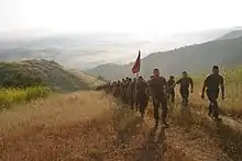 The camp was built in 1950 at the start of the Korean War and named for the Spanish word for clay oven or kiln.[1] Camp Horno initially consisted of Quonset huts that were typical housing for Marines until the 1970s. In 2008 four-story, 170-room barracks were built as part of a facilities renovation project.[2] Parts of Katy Perry's "Part of Me" music video where shot at Camp Horno in 2012.[3] Camp Horno is the frequent site of many Marine ceremonies due to the history of the 1st Marine Regiment and the unit's frequent deployments to combat zones. In January 2014, the regiment celebrated its 100th anniversary at the camp during a ceremony directed by Col. Peter Baumgarten, the regiment's commanding officer and a Marine whose first tour of duty was at Camp Horno in 1988.[4]