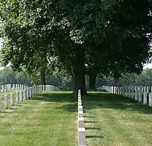 The cemetery was created in 1863 as a place to bury Union soldiers who died while serving in and around Camp Nelson during the Civil War. The first cemetery was located near the camp hospital, and 379 people were buried there between June 1863 and July 1865.[6] A plot of land for the second cemetery, designated "Graveyard No. 2", was selected, and is now at the core of the present national cemetery.[6] There were 1,183 soldiers and affiliated civilian employees buried there between the summer of 1865 and February 1866.[6][7]