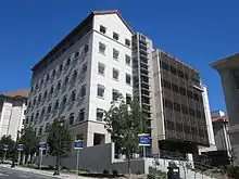 The original building was rated seismically poor and was demolished in 2012.[4] Its replacement, opened in 2015, is part of a long-term campus project to modernize, expand, and better integrate the physics complex at UC Berkeley.[4] The new building has 25% more square footage than the old one and houses laboratories, instructional spaces, academic and administrative offices, support spaces, a research laboratory called the Center for Integrated Precision and Quantum Measurement that is a high-stability, low-noise research facility, and a rooftop observatory. The new building is certified LEED Gold. Construction was funded in part with a grant from the U.S. Department of Commerce, NIST.[3][5][6] The new building was designed by STUDIOS Architecture.