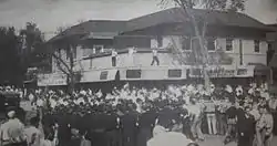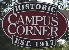 Campus Corner was developed during the early 1900s to serve the needs of the faculty and students working at and living nearby the University of Oklahoma.[5] Nearly all student housing was located in the Campus Corner area and at the time students were not permitted to drive.[5][6] This caused the area to grow rapidly, becoming a thriving business district by 1920.[5] Restaurants, clothing stores, laundry facilities, pharmacies, and beauty salons soon opened for business.[5] One of the early developers in Campus Corner was the Whistler Family, responsible for additions to the area such as the 575 University building which ultimately housed a bookstore, supply shop, restaurant, and a dance floor.[5] In 1929 a tragic fire destroyed most of the then-existing Campus Corner; however, within a few years the area was rebuilt and the fire ultimately led to further expansion.[3]