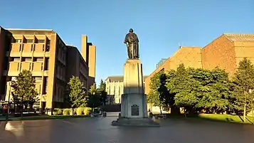 Instead, it was the Alaska-Yukon-Pacific Exposition that defined much of the campus's future layout. The exposition plan, also designed by John C. Olmsted, defined the university's major axis on the lower campus. Oriented to the southeast, it follows the East Asian concept of shakkei or borrowed scenery, providing the university with its primary vista of Mount Rainier on clear days.[3] Most of the university's science and engineering buildings line this axis.