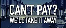 Can't Pay? We'll Take It Away! is a British factual documentary series on Channel 5. It follows the work of High Court enforcement officers (previously known as sheriffs) as they execute privately obtained High Court writs across England and Wales on behalf of private clients, on those who have failed to make repayments on alleged debts or refuse to vacate a property. The series was first broadcast on 24 February 2014. In series 1 and 2 the show featured High Court enforcement agents (HCEAs) from a private limited company called High Court Solutions. The subsequent series featured HCEAs from Direct Collection Bailiffs Ltd (DCBL). Five series of the programme have been broadcast to date.