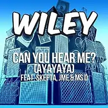 "Can You Hear Me? (Ayayaya)" is a single from British grime artist Wiley, featuring vocals from Skepta, Jme and Ms D. It was released as the second single from his ninth album, The Ascent, on 28 October 2012 for digital download in the United Kingdom. It was written by Richard Cowie, Joseph Adenuga, Jamie Adenuga, Dayo Olatunji and produced by Rymez and Sillkey.