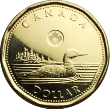 26.5 mm | 1.95 mm | 7 g | Plain, 11-sided | Queen Elizabeth II | Common loon | Loonie |