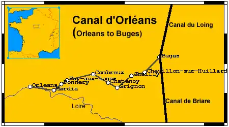 The Canal d'Orléans (French pronunciation: [kanal dɔʁleɑ̃]) connects the river Loire at Orléans to a junction with the Canal du Loing and the Canal de Briare in the village of Buges near Montargis.[2] It is entirely within the department of Loiret.