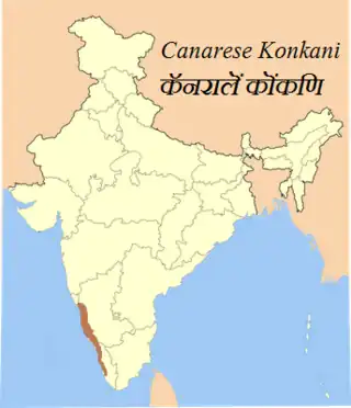 ![]() Distribution of native Canarese Konkani speakers in India | |