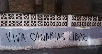 There are also nationalist trade unions such as FSOC (Frente Sindical Obrero Canario), IC (Intersindical Canaria), as well as revolutionary organizations, like Inekaren.[18] Some radical groups use the word Taknara to refer to the Canary Islands, but other nationalists do not agree with this name.[19]