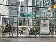 Canary Wharf is a Docklands Light Railway (DLR) station in Canary Wharf in East London. Located next to One Canada Square and between two parts of a shopping centre,[8] it serves the Canary Wharf office complex. Each of its three tracks feature platforms on both sides, allowing for easy interchanges and access to surrounding buildings. The station is sheltered by a distinctive elliptical glass roof.