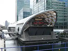 Canary Wharf is an Elizabeth line station in Canary Wharf in East London, England. The station forms an artificial island in the West India Docks (North Dock). The five upper levels of the station are a mixed-use development known as Crossrail Place.[2] It is on the Abbey Wood branch of the Elizabeth line between Whitechapel and Custom House. Construction began in May 2009, and the station opened on 24 May 2022 when the section between Paddington and Abbey Wood stations began services.[3][4] During the project's development the station was named Isle of Dogs, before the current name was adopted.[5] The station was developed under a fixed price contract of £500 million with £350 million provided from the Crossrail budget and £150 million from the Canary Wharf Group[6][7] with Crossrail spending an additional £80 million on safety improvements before it was opened.[8]