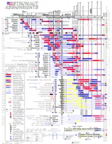 A Gantt chart showing how astronaut assignments were deeply affected by cancelled Apollo missions.