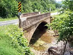 The Cane Hill Road Bridge (also Little Red River Bridge) was a closed-spandrel arch bridge built in 1923 located near Prairie Grove, Arkansas. It carried Arkansas Highway 170 over the Little Red River,[2] and was in 2014 in the process of being bypassed. The bridge has a single span about 43 feet (13 m) in length, with an overall bridge length of 48 feet (15 m). The bridge is 15 feet (4.6 m) wide. AR 170 was the major north–south route in the area when the bridge was built, but this section has since been bypassed by the construction of United States Route 62. The bridge was built by the Luten Bridge Company of Knoxville, Tennessee.[3]