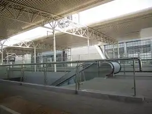 Platforms 1 and 2 are used for trains to Jinan, Qingdao and Shanghai Hongqiao; platforms 3 and 4 are used for services to Beijing South and Tianjin West. Two tracks in the middle of the station allow for trains running direct services to continue at full speed without stopping.