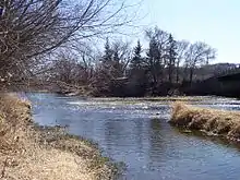 Past the Falls, the river is in the Driftless Area of Minnesota, a region that remained ice free during the last ice age, allowing the river to carve a very impressive canyon. The upper region of the river is involved with terminal moraines and glacial drift and till, and is not in the Driftless Area.