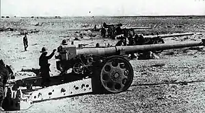 The Cannone da 149/40 was a heavy gun which served with Italy during World War II. It was intended to replace the obsolete Cannone da 149/35 A, but the small numbers produced prevented that. By 1940 orders had been placed for 590, but only 51 were in service at the end of September 1941. Weapons captured by the Germans after the Italian surrender in 1943 were put into service as the 15 cm K 408(i). Ansaldo produced a batch of twelve for the Germans in April 1944.
