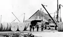 Dressed grindstones awaiting shipment, ca 1920