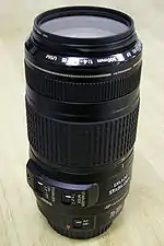 The EF 70–300mm lenses are a series of telephoto zoom lenses made by Canon Inc. They have a Canon EF lens mount to work with the EOS line of cameras.