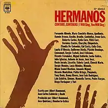 "Cantaré, cantarás" (I Will Sing, You Will Sing) is a single by various Latin American icons called circumstantially "Hermanos", and it was released in 1985. The B-side is conformed by Herb Alpert's "African Flame". The song was considered as an LP and peaked number 12 in Billboard's Latin Pop Albums in September 1985.[1]